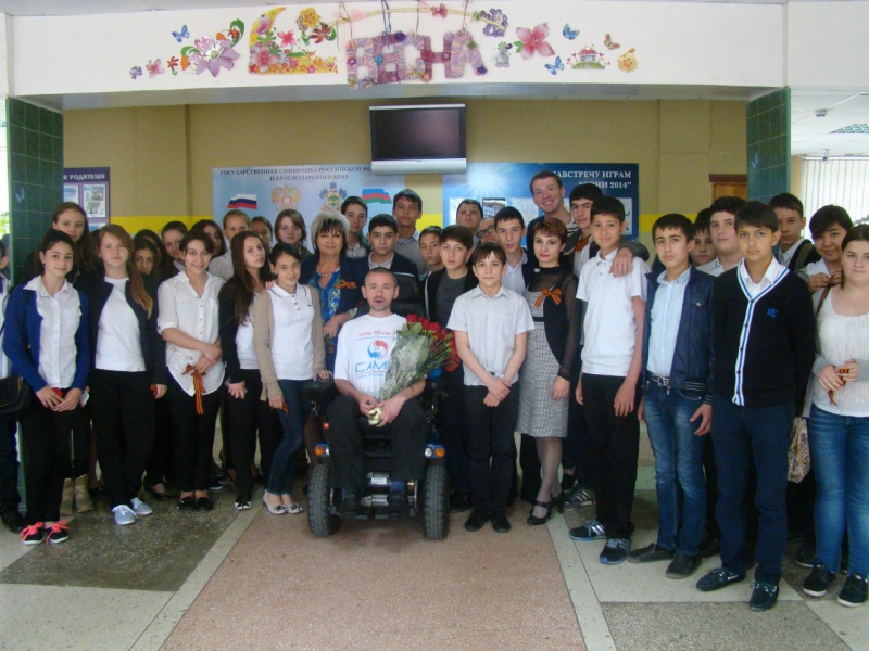 На фото: встреча с учениками школы №27 в Сочи, 2014 год.